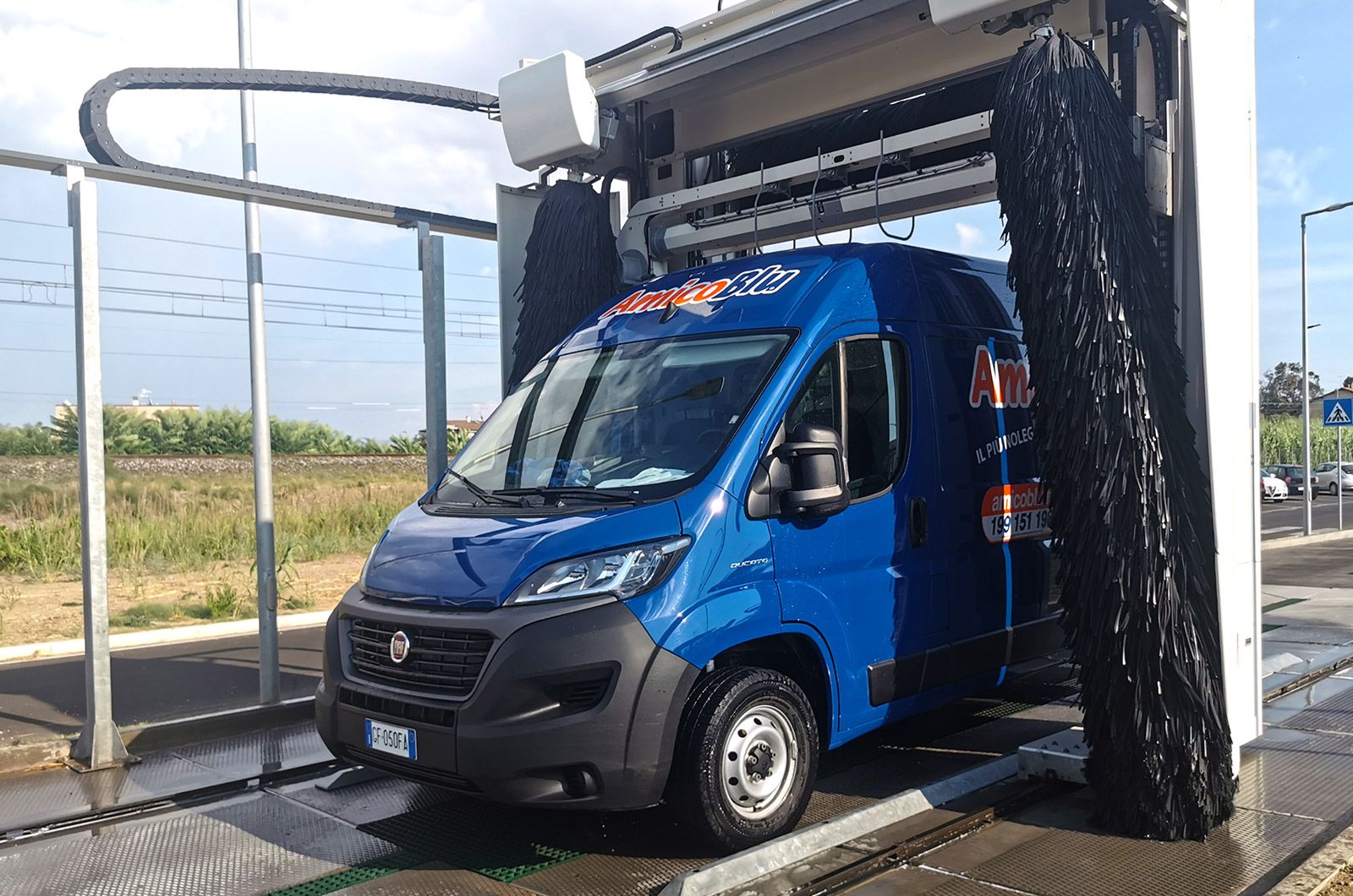 Il nostro autolavaggio dispone di 2 portali dotati di spazzola verticale multidimensionale, che si adatta alle inclinazioni della carrozzeria, perfetti per il lavaggio efficace di mezzi fino ad un'altezza massimo di 3,20 mt. Possiamo fornire preventivi personalizzati e stipulare convenzioni con qualsiasi tipo di azienda che necessiti il lavaggio dei mezzi del proprio parco auto aziendale. Per la tua attivitร , possiamo fornirti lโopzione in grado di garantire il miglior rapporto qualitร -prezzo.